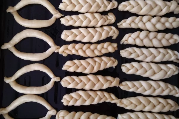 Tüm malzemeleri bir kaba koyun, en son unu azar azar ekleyip çok iyi yoğuralım ( orta halli bir hamur elde edelim) şeklini verip üzerine yumurta sarısı ve çörek otu ekleyebilirsiniz.